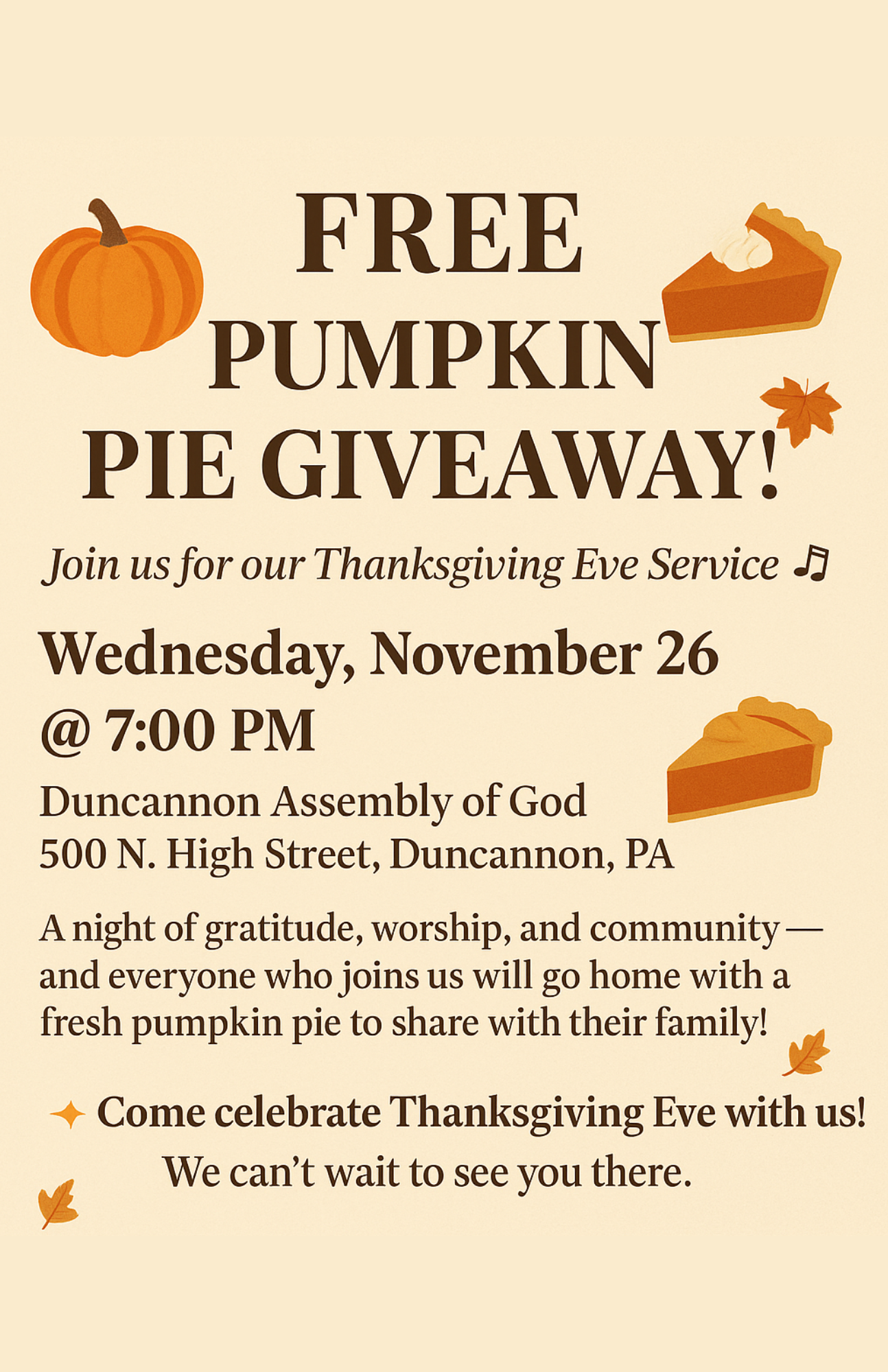 Spend Thanksgiving Eve With Us – And Take Home a Pie!